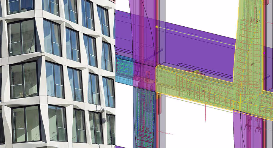 Bei komplexen Gebäuden stößt die 2D-Planung schnell an ihre Grenzen. Die Ergebnisse hängen stark vom räumlichen Vorstellungsvermögen des Konstrukteurs ab. Da sitzt schnell mal eine Ankerschiene an der verkehrten Seite oder eine verdeckte Kante wird übersehen. Durch die Arbeit in 3D kann das Team der PGG Planungsgruppe Bauen U. Gerstner Fehler vermeiden, noch bevor sie entstehen. „Wir haben seit wir in 3D planen nie gehört, dass etwas nicht passt, weder im Bereich der Schalung noch der Bewehrung“, betont Konstrukteur André Holz, verantwortlich für Tekla Structures bei der PGG. „Wir haben deutlich weniger Rückfragen aus dem Fertigteilwerk, die uns aufhalten und unser gesamter Arbeitsfluss ist besser.“ Das 3D-Modell ist die zentrale Quelle der Wahrheit im Projekt. Was hier passt, passt auch in der Realität. „Fehler, die uns vorher vielleicht nicht einmal aufgefallen sind und das Honorar schmälern, lassen sich heute von vornherein vermeiden“, erklärt André Holz.